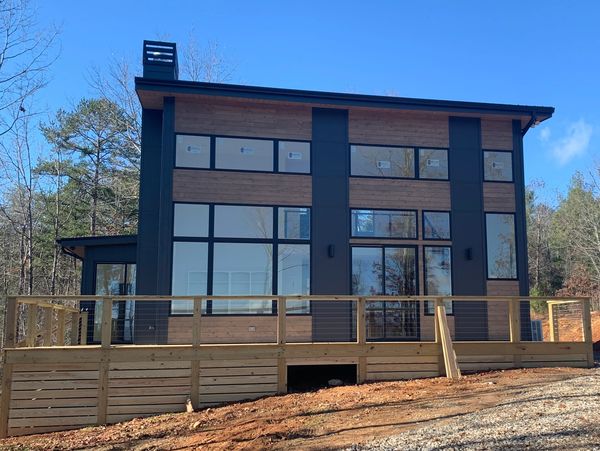 The Chickadee is a 2 story modern scandanavian style cabin that really allows you to take advantage of the views from the second story. Its living area has soaring ceilings and tons of windows to soak up the light and views of nature in The Nest at Brannon Ridge Reserve.