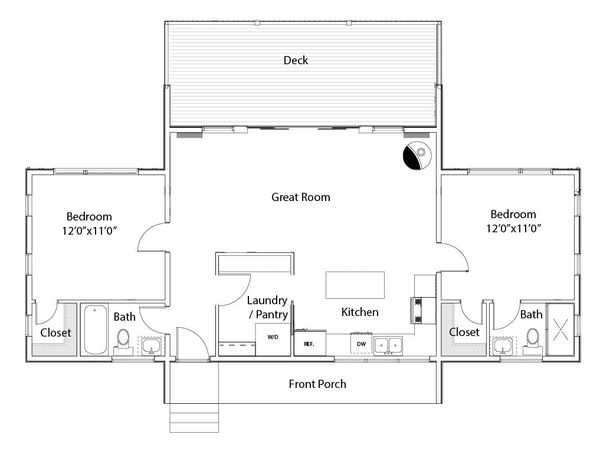Both the bedrooms include en suite bathrooms. The Wren also has a dedicated half bath with laundry room with storage room. The porch/patio spans nearly the width of the home with an optional side patio off the master to take in all of the views of Blue Ridge Mountains!