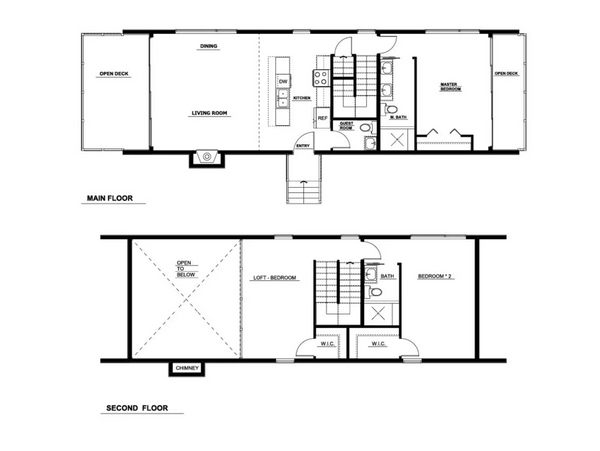 The Chickadee is our newest 2 story plan, that has the option of a 3 bedroom with the main bedroom on the ground floor with an en suite bathroom and 2 guest bedrooms with shared bathroom upstairs. Or choose the alternative layout with 2 bedrooms, and an open loft overlooking the living area.